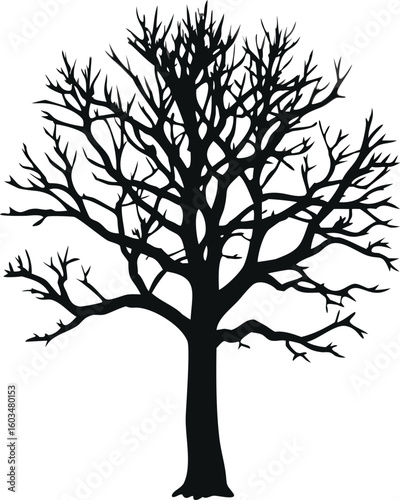 © Kafi, Obraz premium Leafless Bare Tree Silhouette with Twisted Branches, Gothic Vector Art