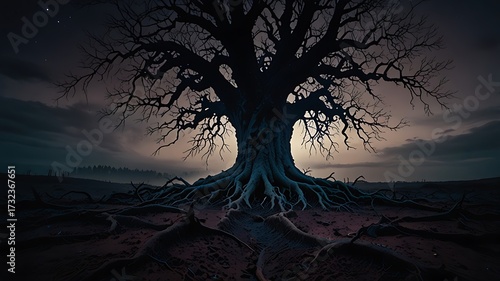 © WRONESIDED, Fototapeta premium Leafless Dried Tree Under Moonlit Sky