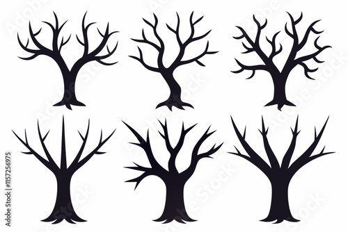 © Taibul, Fototapeta premium Leafless Tree Silhouette Icon Set