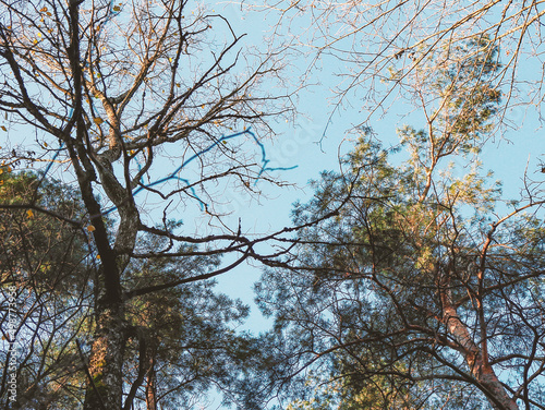 © Marija Crow, Obraz premium Leafless trees branches on blue sky background