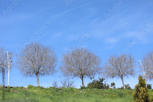 Obraz premium leafless trees in a row in the field