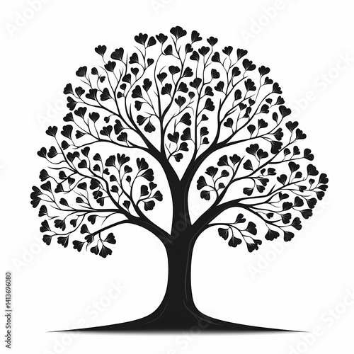 © shan, Obraz premium Leafy Black Tree Silhouette: Organic Vector Illustration of Spring Nature and Foliage