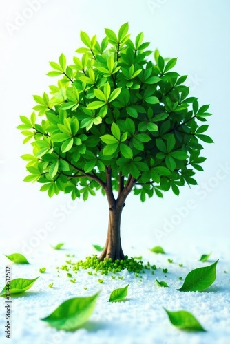 Fototapeta premium Leafy greens scattered on a snowy white surface, tree, isolated, nature