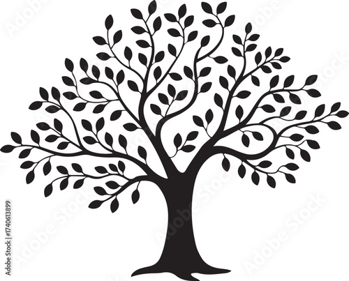 Obraz premium Leafy Tree Black Silhouette Illustration