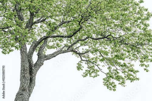 © well, Obraz premium Leafy tree branch, white isolated background