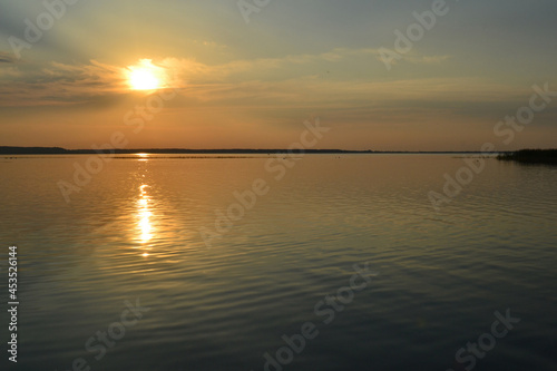 © Allodin, Naklejka premium leaning lantern at a beach with a rising sun.