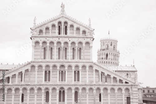 Naklejka premium Leaning Tower and Facade of Cathedral Church in Pisa; Italy