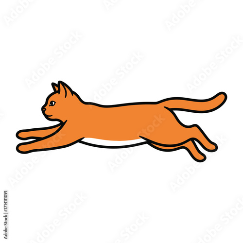Fototapeta premium Leaping Cat: Dynamic illustration captures a single cat mid-leap, conveying energy and agility, with a clean line art style and bright, playful color palette.