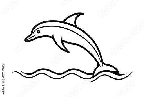 © Uttam, Fototapeta premium Leaping Dolphin Ocean Waves Aquatic Wildlife Marine Animal Cartoon