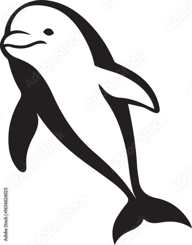 Obraz premium Leaping dolphin silhouette marine animal, Ocean jumping dolphin graphic