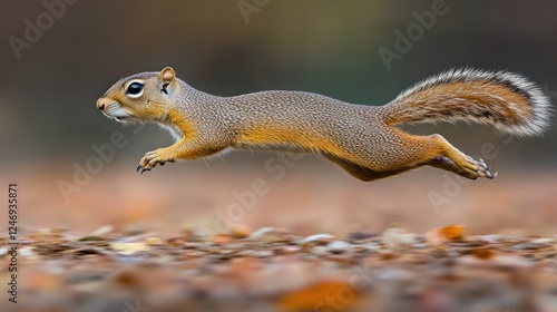 Fototapeta premium Leaping Squirrel in Autumnal Habitat