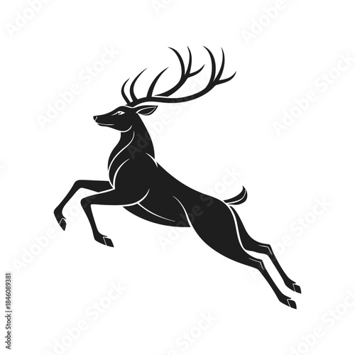 © MSTBENUARA, Obraz premium Leaping Stag Deer Silhouette Logo