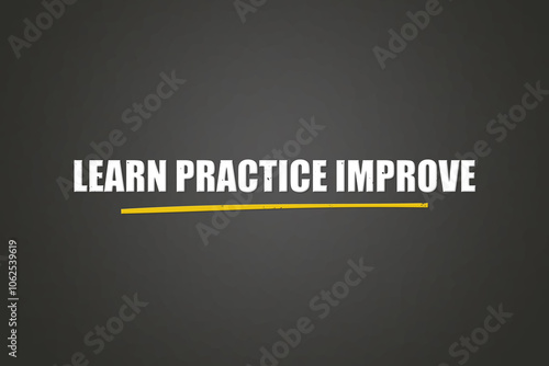 Fototapeta premium Learn practice improve. A blackboard with white text. Illustration with grunge text style.
