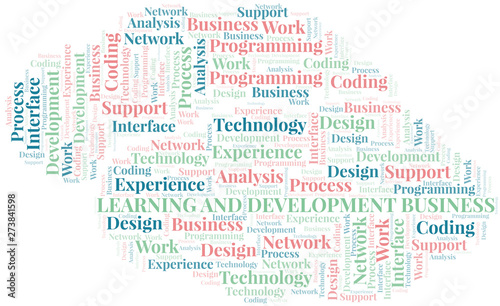 Obraz premium Learning And Development Business word cloud. Wordcloud made with text only.