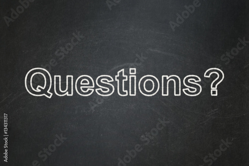 © Maksim Kabakou, Obraz premium Learning concept: Questions? on chalkboard background