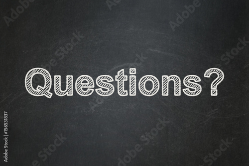© Maksim Kabakou, Obraz premium Learning concept: Questions? on chalkboard background