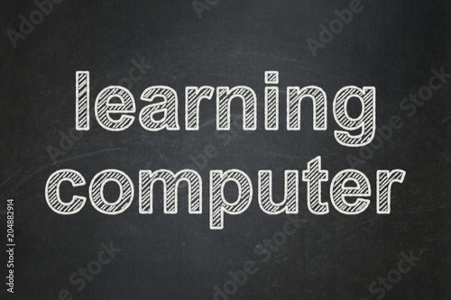 © Maksim Kabakou, Obraz premium Learning concept: text Learning Computer on Black chalkboard background