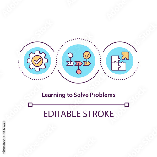 Fototapeta premium Learning to solve problems concept icon. Decision making process. Gathering information. Skills development abstract idea thin line illustration. Vector isolated outline color drawing. Editable stroke