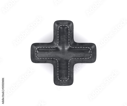 © Denys Rudyi, Obraz premium Leather black texture letter digit plus sum sing mark