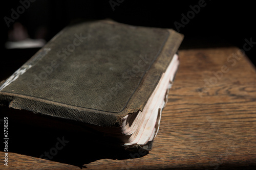 © Sean Nel, Fototapeta premium Leather covered old bible lying on a wooden table
