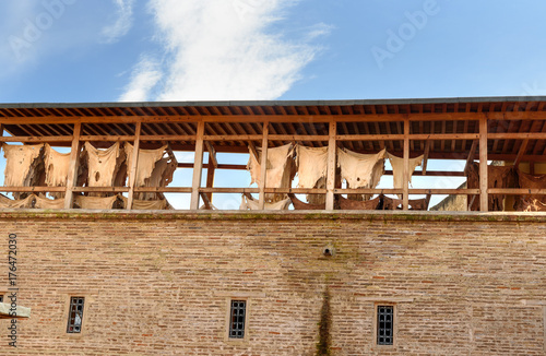 Fototapeta premium Leather drying in the tannery. Fes, Morocco