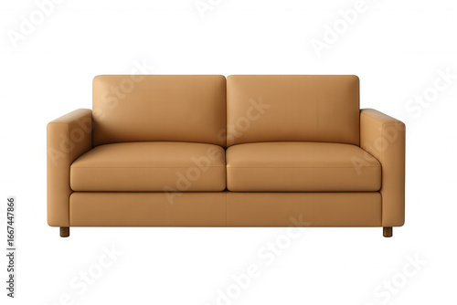 © Krtola , Fototapeta premium Leather sofa in warm brown tone, positioned against transparent backdrop for design rendering