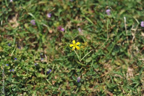 © SRBSCAPE, Obraz premium leaves and yellow flower background selectively focused