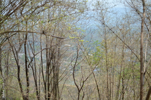 © seahorse, Obraz premium leaves background, Branches with little leaves in front of sunset sky