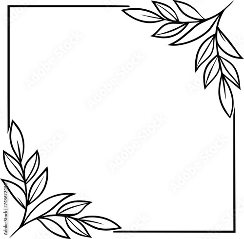 © N2, Naklejka premium Leaves corner border, hand drawn doodle style corner border frame with leaf