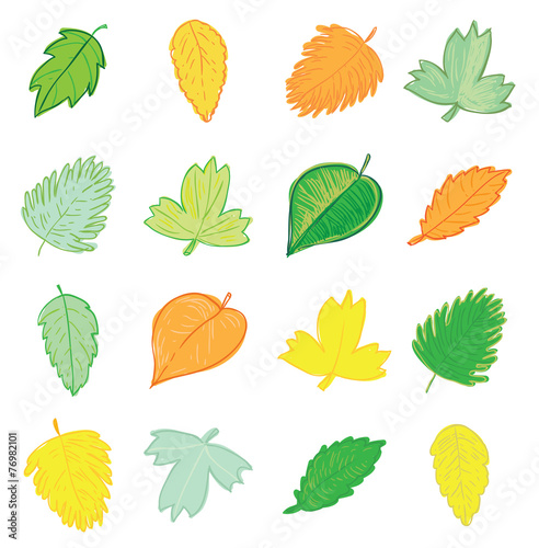 © Gabriel Jose, Obraz premium leaves doodles set. Vector hand drawn illustration
