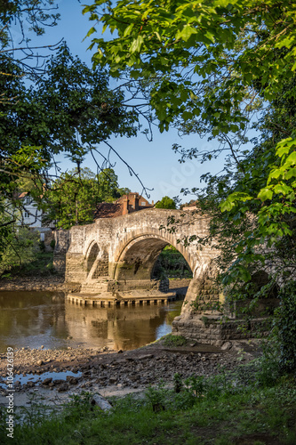 © Valerie2000, Fototapeta premium Leaves framed view to medieval Aylesford bridge and river in Kent, England