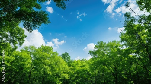 © PikePicture, Obraz premium leaves green background blue