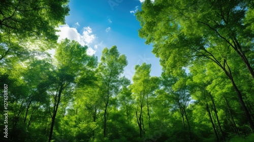 © vectorwin, Obraz premium leaves green blue background