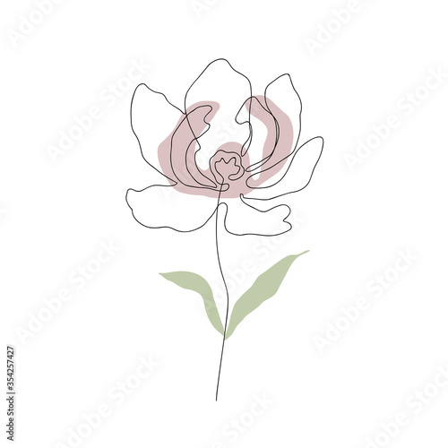 © TWINS DESIGN STUDIO, Obraz premium Leaves icon Line art. Minimal flora design with abstract shape background for cover, prints, fabric and wallpaper. Vector illustration