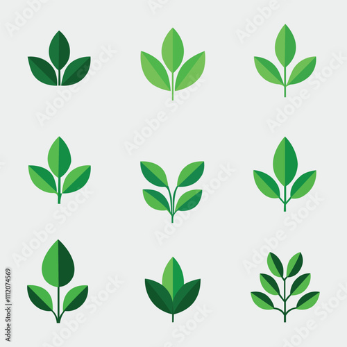 © Musfiqur, Naklejka premium Leaves Icon - Vector Stock Illustration Flate template with Leaf Shapes Collection.