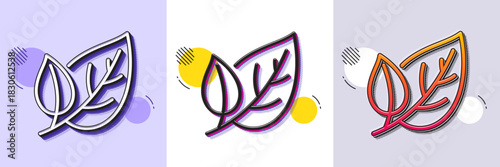 Naklejka premium Leaves line icon. Halftone dotted pattern. Gradient icon with grain shadow. Nature plant leaf sign. Environmental care symbol. Line leaf icon. Various designs. Vector