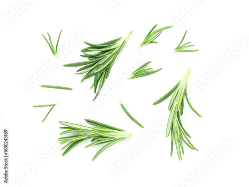 Obraz premium Leaves of fresh rosemary isolated on white background, closeup