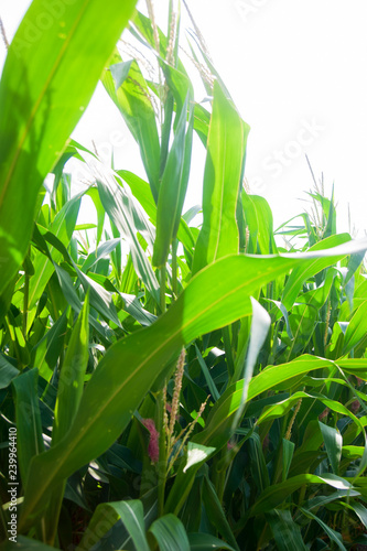 Obraz premium Leaves of maize in summertime on the field
