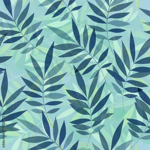 Naklejka premium Leaves pattern. Watercolor leaves seamless vector background, textured jungle...