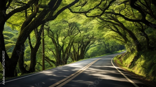 © vectorwin, Fototapeta premium leaves road trees