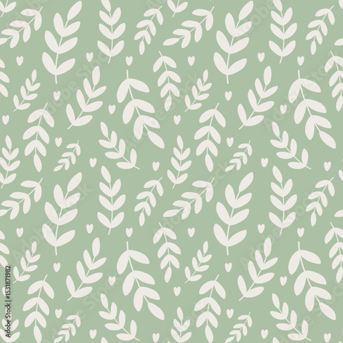 © ndaofi, Fototapeta premium leaves seamless pattern on green background
