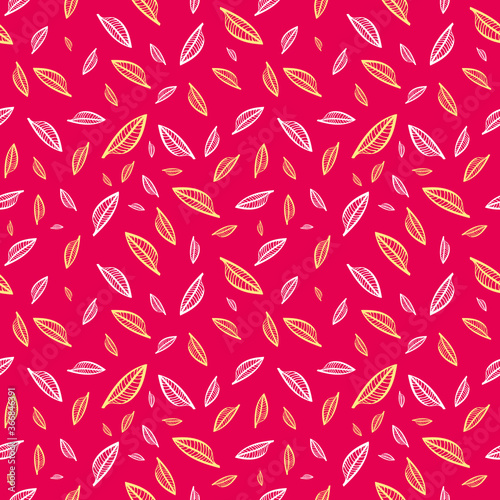 © Denis Sined, Obraz premium Leaves seamless pattern, poster design template, vector illustration