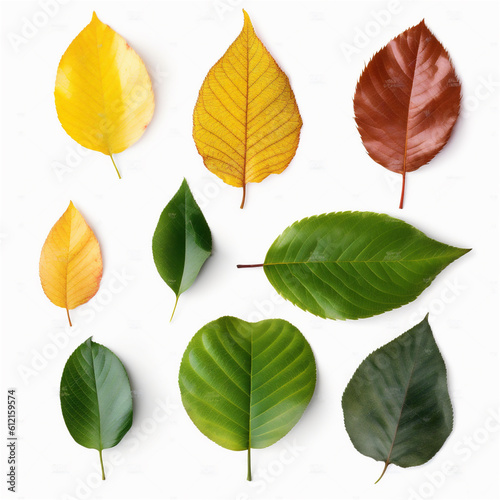 © Elena, Obraz premium leaves selection isolated on white. AI generated content