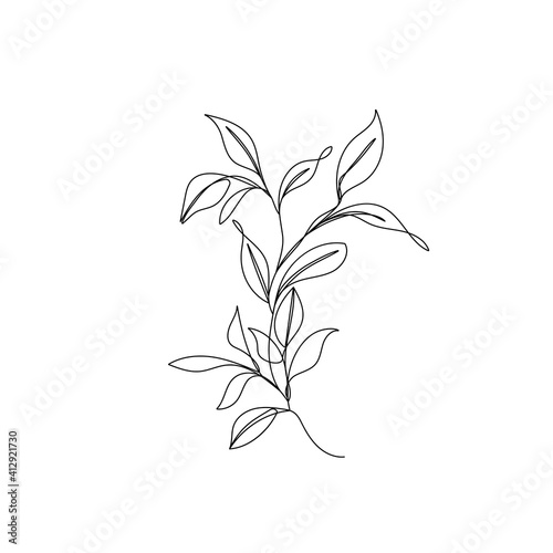 © Наталья Дьячкова, Naklejka premium Leaves Single Line Drawing. Continuous Line Drawing of Simple Flower Minimalist Style. Abstract Contemporary Design Template for Covers, t-Shirt Print, Postcard, Banner etc. Vector EPS 10.
