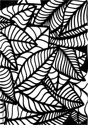 © anikii, Fototapeta premium leaves Vector pattern hand drawn. Natural pattern in black and white. Organic decorative repeated leaves. Background design. leaf Abstract vector.