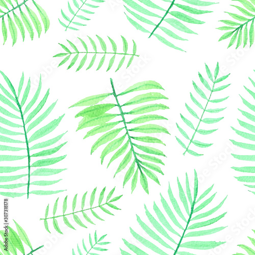 © OneyWhyStudio, Naklejka premium Leaves watercolor seamless pattern background. Vector illustration.