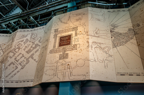 © Jeff Whyte, Obraz premium Leavesden, UK - August 23, 2022: Exhibits inside the Making of Harry Potter tour at Warner Bros studio.