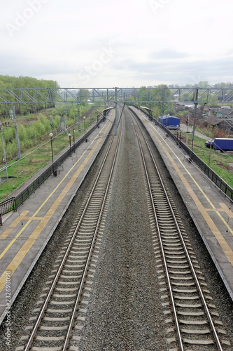 © vladimirmpetrov, Naklejka premium Leaving the rails. Photo from the elevation above the railway tracks