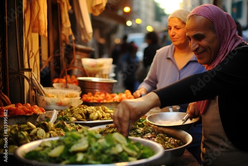 © ToonArt, Fototapeta premium Lebanese mezze on a lively Beirut street.