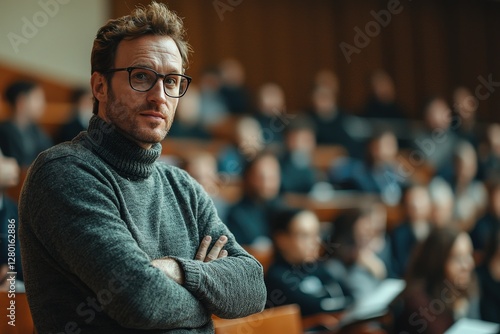 Fototapeta premium Lecturer gives an educational lecture he has deep knowledge in his field
